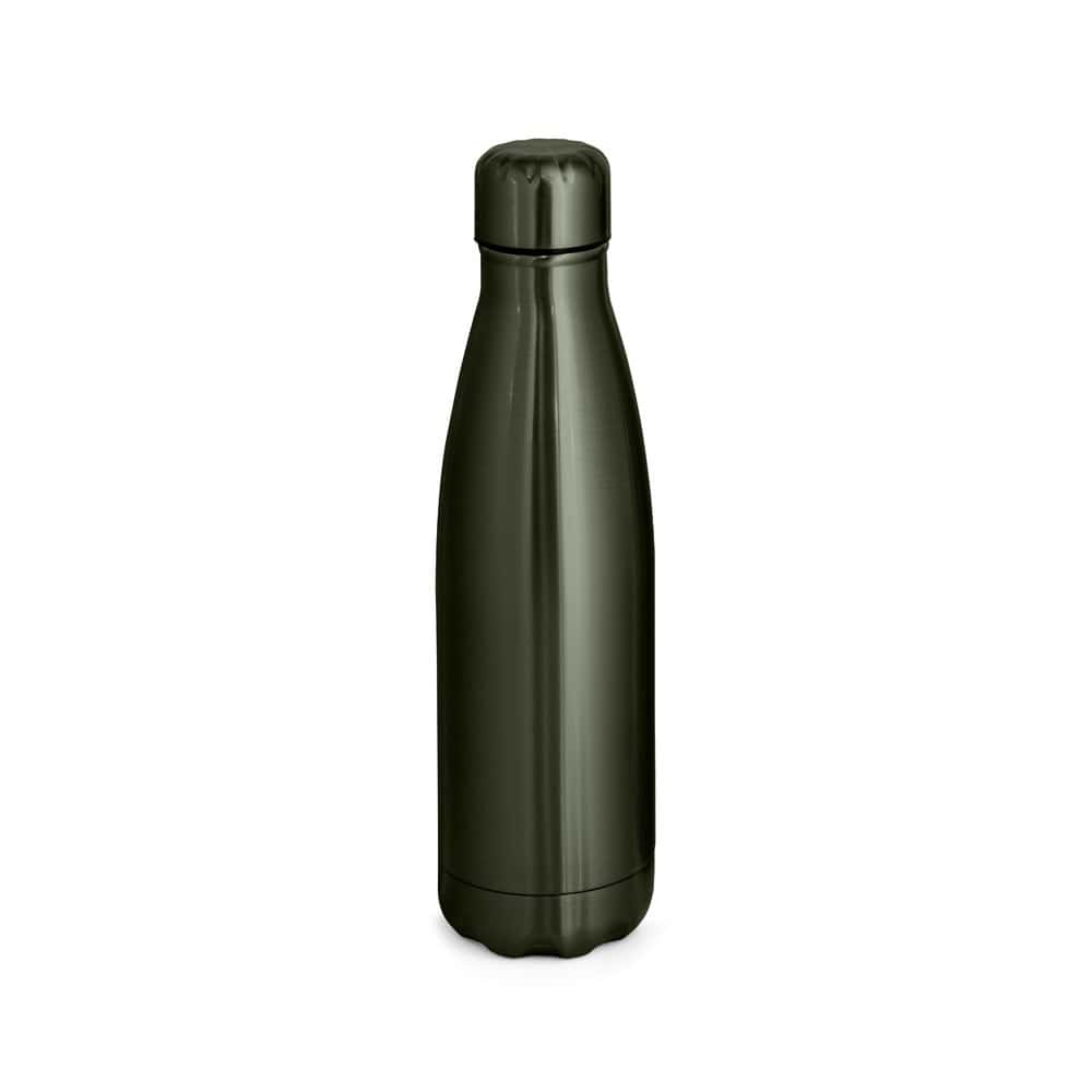Rostfri dubbelväggig vakuumisolerad flaska. Flaska med metalliserad yta och lock i rostfritt stål. Kapacitet upp till 510 ml. Levereras i en presentförpackning av kraftpapper. ø70 x 255 mm