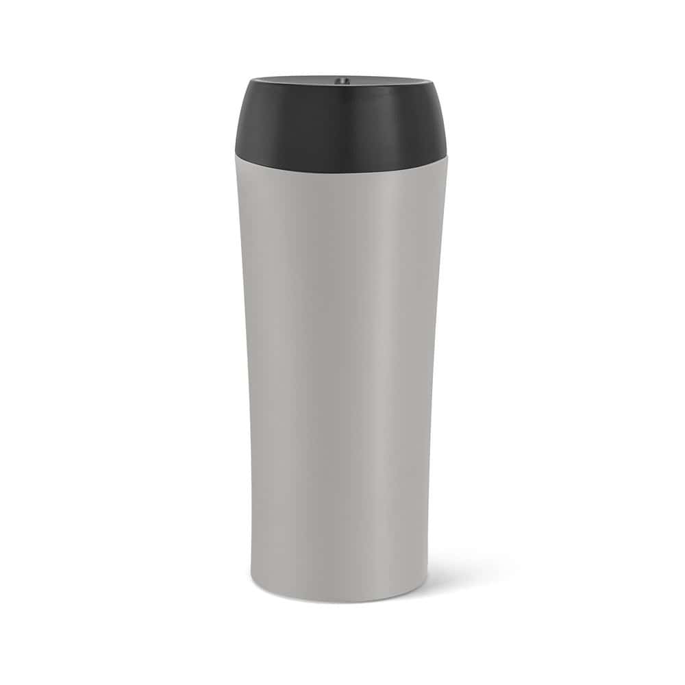 Resekopp i rostfritt stål och PP med luftisolerad dubbel kropp, lock med antispillsystem och halkfri i basen. Bägaren har en kapacitet på upp till 470 mL. Levereras i presentförpackning