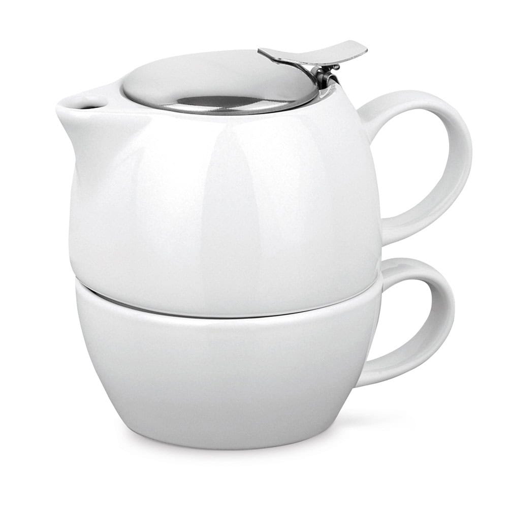 2 i 1 porslin teset – 440 mL tekanna med rostfritt stensil och 280 mL mugg. Levereras i presentförpackning