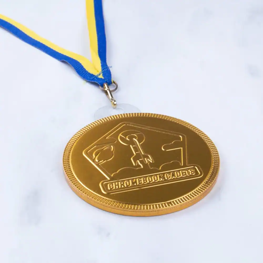Tillverkade i vår egen fabrik med högkvalitativ mjölkchoklad och elegant guldfolie, ger dessa medaljer en lyxig känsla som passar utmärkt för jubileum, företagsfester, skolavslutningar eller sportevent.
