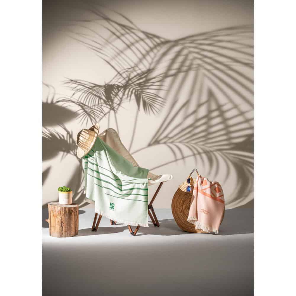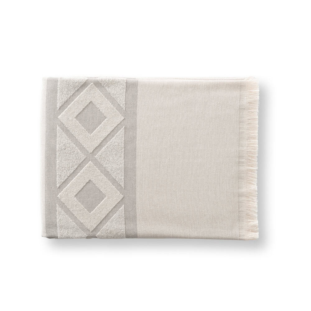 Multifunktionell handduk och badhandduk (350 g/m²) av lätt och motståndskraftig bomull (85 %) och återvunnen bomull (15 %). Tillverkad i Europa. 100 x 180 cm