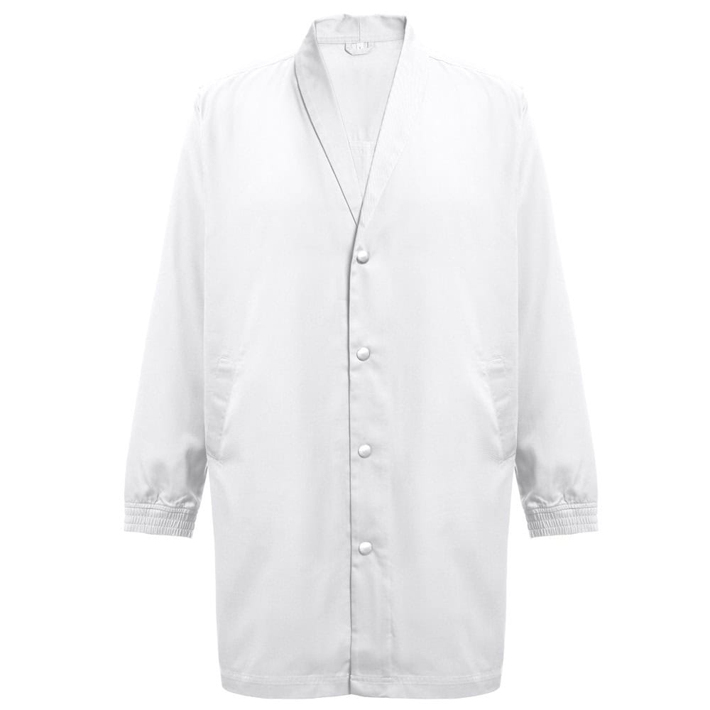 Arbetsjacka (unisex) 20% bomull och 80% polyester (190 g/m²). Elegant och modernt snitt med stiliserad krage och 2 sidofickor. Elastiska manschetter och knäppning med tryckknappar. Öppning på baksidan för större rörelsefrihet. Storlek: S, M, L, XL, XXL, 3XL