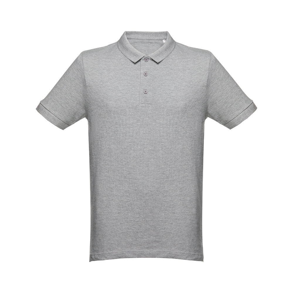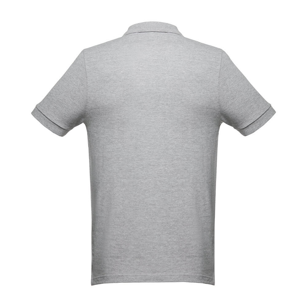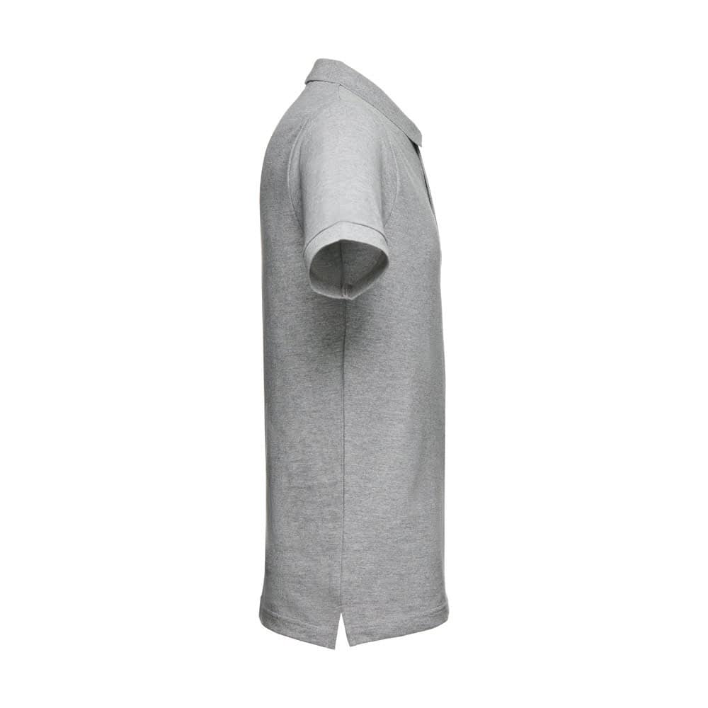 Kortärmad herr pike i 100% kardad bomull (240 g/m²) (färg: 183: 85% bomull/15% viskos). Vanligt snitt med krage- och bandärmar och förstärkning av pikékrage. Förstärkt krage med 3 matchande färgknappar (extra knapp insatt i innersömmen). Styck klippt och sytt med små sidöppningar längst ner på polot.Avtagbar synlig etikett. Storlek: S, M, L, XL, XXL