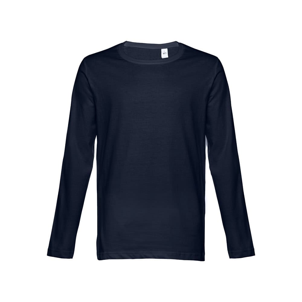 Långärmad herr-t-shirt 100% bomullsjersey (150 g/m²) med kardad bomullsgarn (färger: 195: 60% bomull/40% polyester, färg 183: 90% bomull/10% viskos). Ribkrage 1×1 och jerseyförstärkningsband. Tubular T-shirt med regelbundet snitt och dubbel söm på ärmarna och botten. Storlek: S, M, L, XL, XXL
