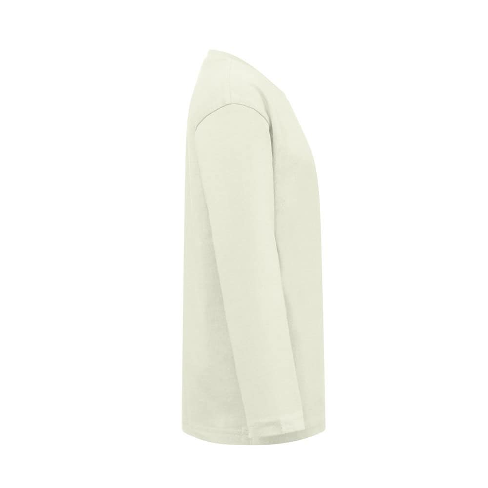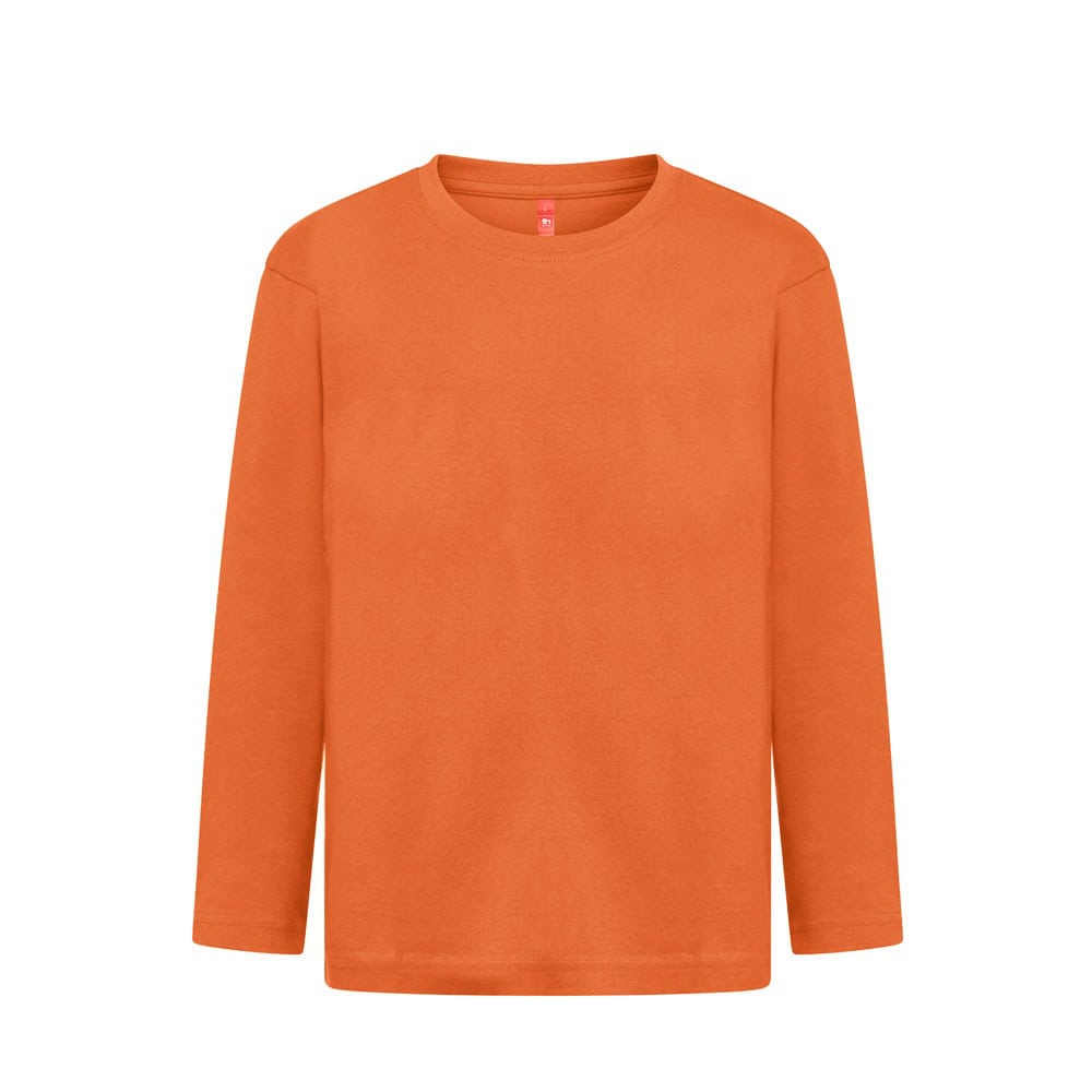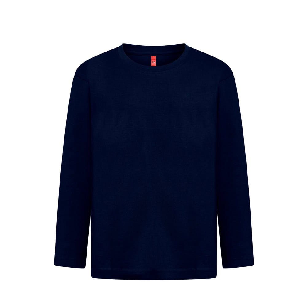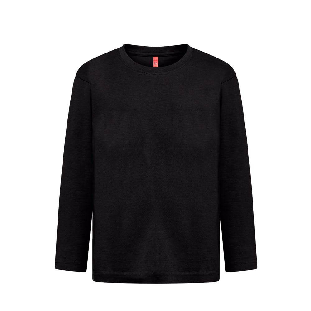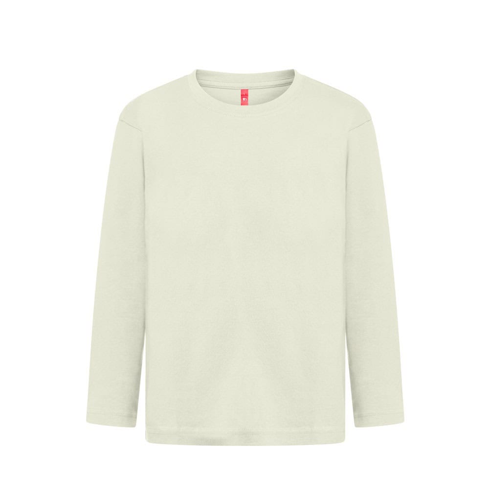Långärmad T-shirt (150 g/m²), med enzymatisk behandling, för barn i jerseytyg (100 % bomull med hållbara jordbruksmetoder). 1×1 ribbkrage med jerseyförstärkningsband. Rörformad T-shirt med vanligt snitt och dubbla sömmar på ärmarna och nederdelen av artikeln. S-rlek: 2, 4, 6, 8, 10, 12
