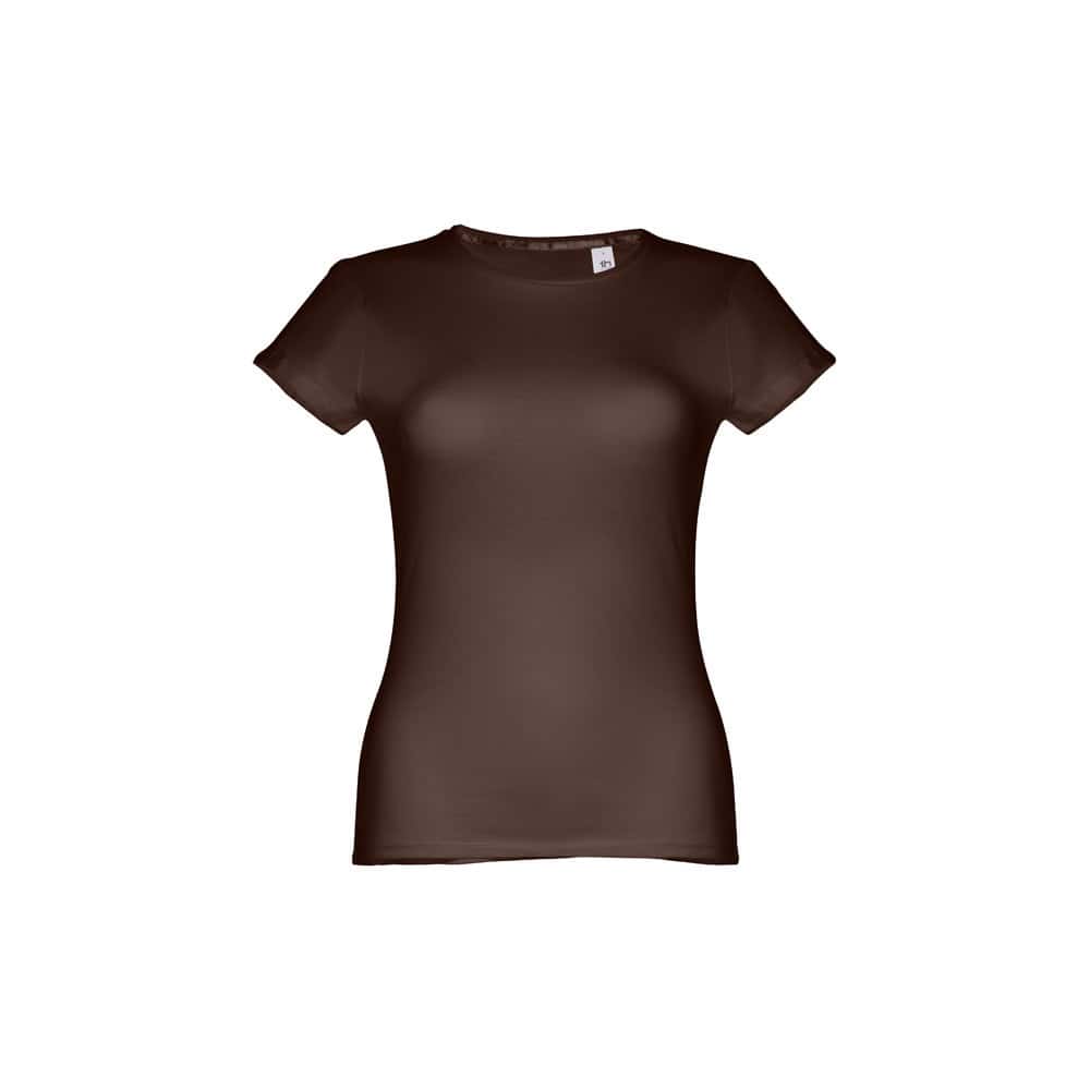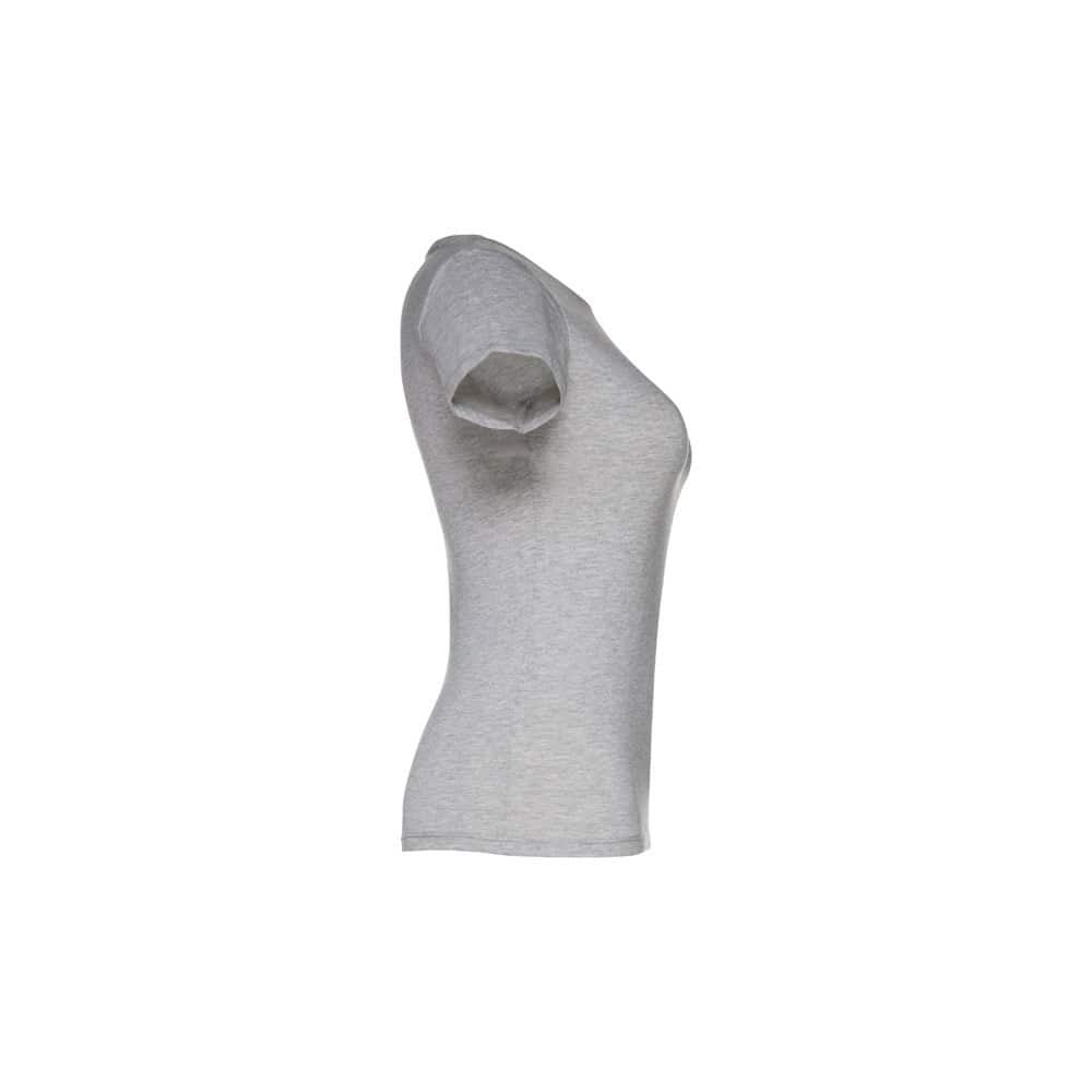 T-shirt för damer i 100% bomullsjersey (150 g/m²) med kardbomullsgarn (färg 183: 90% bomull/10% viskos). Innehåller en tunn dubbel jersey krage förstärkt av en satin förspänningstejp. Klippt och sytt plagg med dubbelsömd fåll på ärmarna och botten. Storlek: 3XL