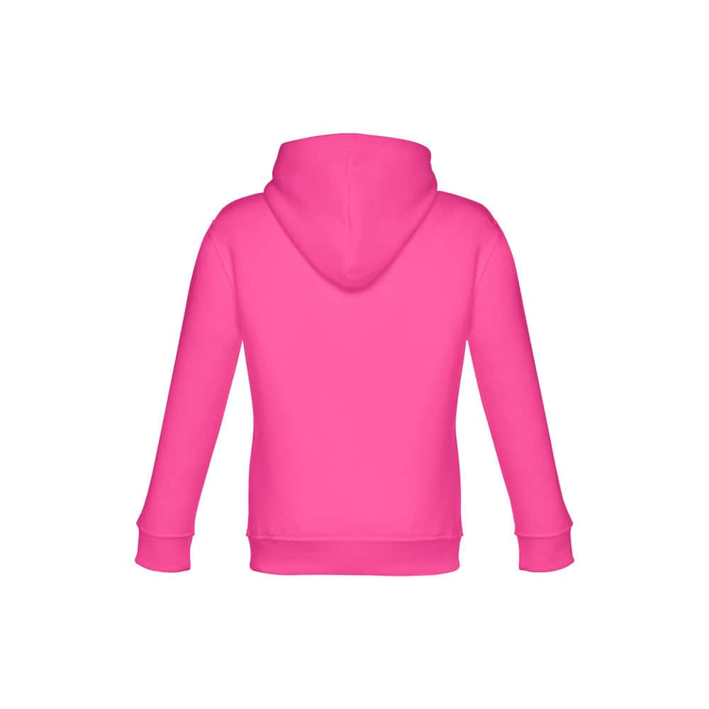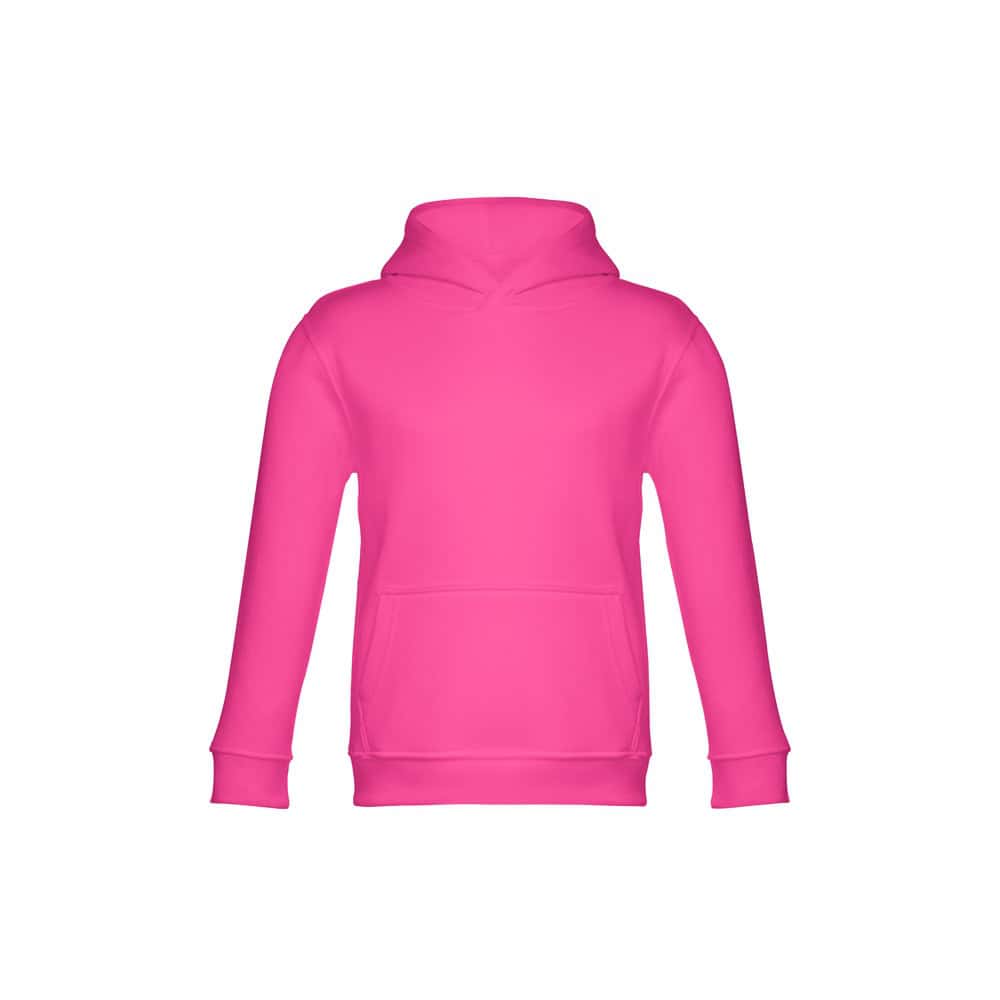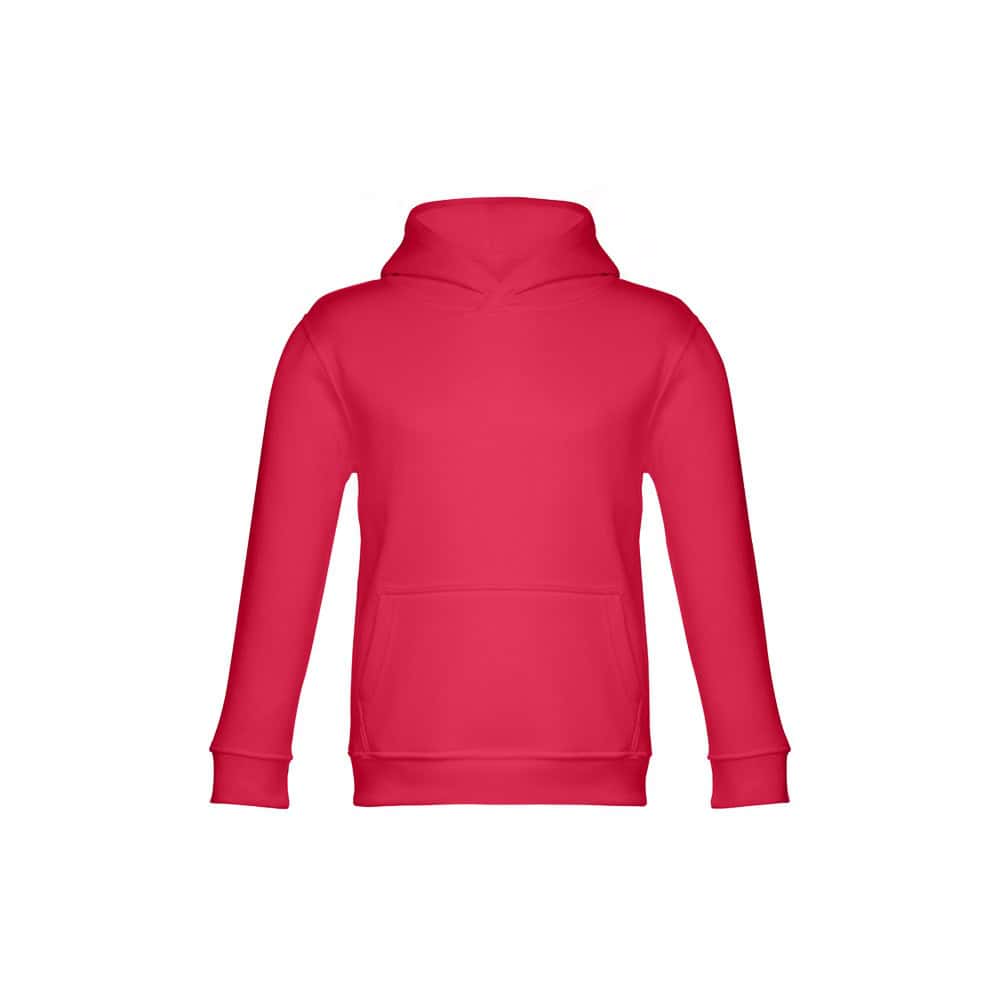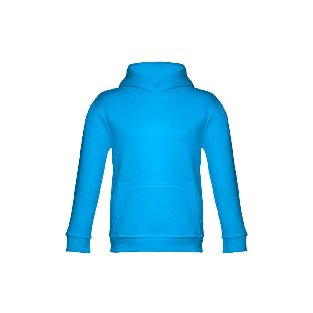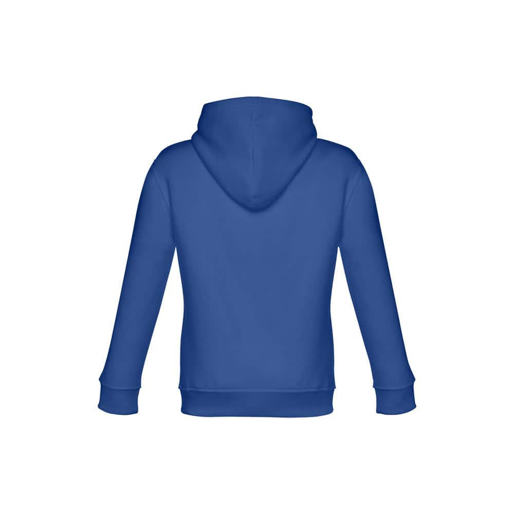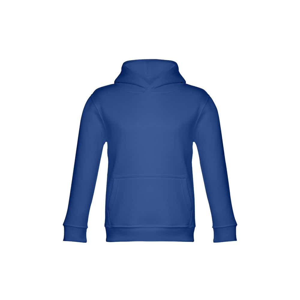 Luvtröja för barn (unisex) i 50% bomull och 50% polyester (320 g/m²) med kardad interiör. Huva i Jerseyfodrad som uppfyller Europeiska unionens säkerhetsnormer. Tröja med pungficka och 1×1 Rib manschetter och midjeband. Storlek: 2, 4, 6, 8, 10, 12